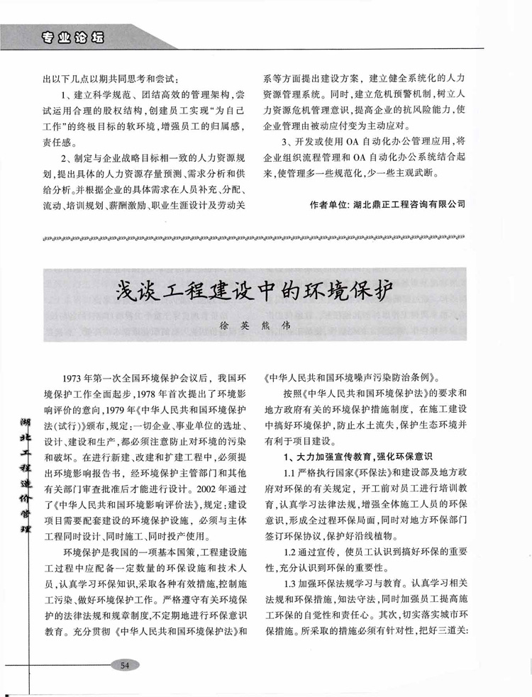 我公司論文在《湖北工程造價管理》雜志發表