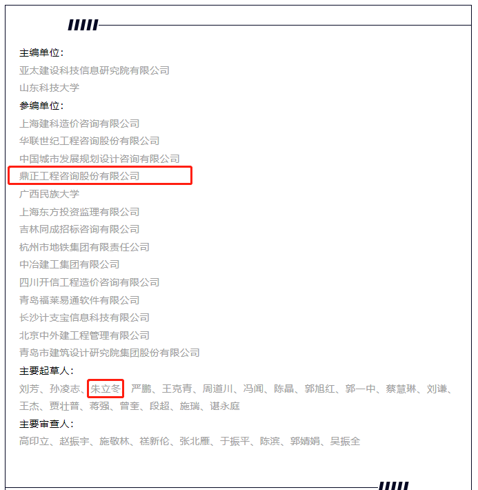 此次參與《建設項目過程結算管理標準》的編制既是鼎正多年堅持推行施工過程結算的又一成果,更是鼎正履行推動行業進步、規范建設市場行為的專業職責所在。未來,鼎正將再接再厲,不斷成長,通過標準編制在行業內傳遞鼎正經驗,為行業發展貢獻力量。
