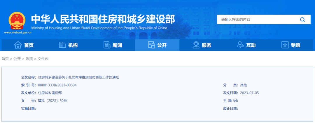 住房城鄉建設部關于扎實有序推進城市更新工作的通知