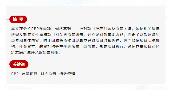 新機(jī)制下PPP存量項(xiàng)目持續(xù)監(jiān)管探討