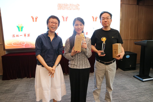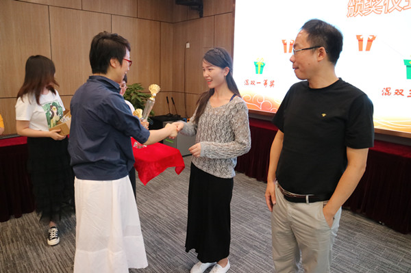 副總經理毛迎霞為混雙三等獎獲得者王雁然、張愉頒獎