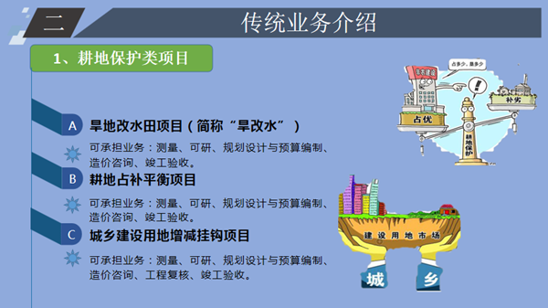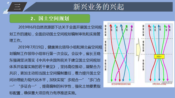 下午,來自自然資源事業部的胡小虎進行了《新形勢下的自然資源咨詢業務探析》的主題分享。胡小虎結合2018年3月自然資源部、農業農村部組建成立的背景,對自然資源傳統業務、新興業務的興起做出了詳細介紹,并從“客戶基本信息分析”、“客戶采購項目分析”、“市場分析”、“從業單位分析”、“擬拓展方向”五個方面對自然資源咨詢業務進行了分析。